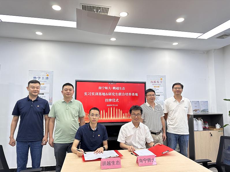 为深化校企合作,推动产教融合与人才培养模式改革,7月11日,我校与广西鹏越生态科技有限公司在广西中国—东盟青年产业园举行研究生联合培养基地、实习实训基地签约仪式。化学与材料学院院长苏炜、副书记陈今浩、应用化学专业负责人劳远侠等出席揭牌仪式,仪式由广西鹏越生态科技有限公司总经理杨正斌主持。