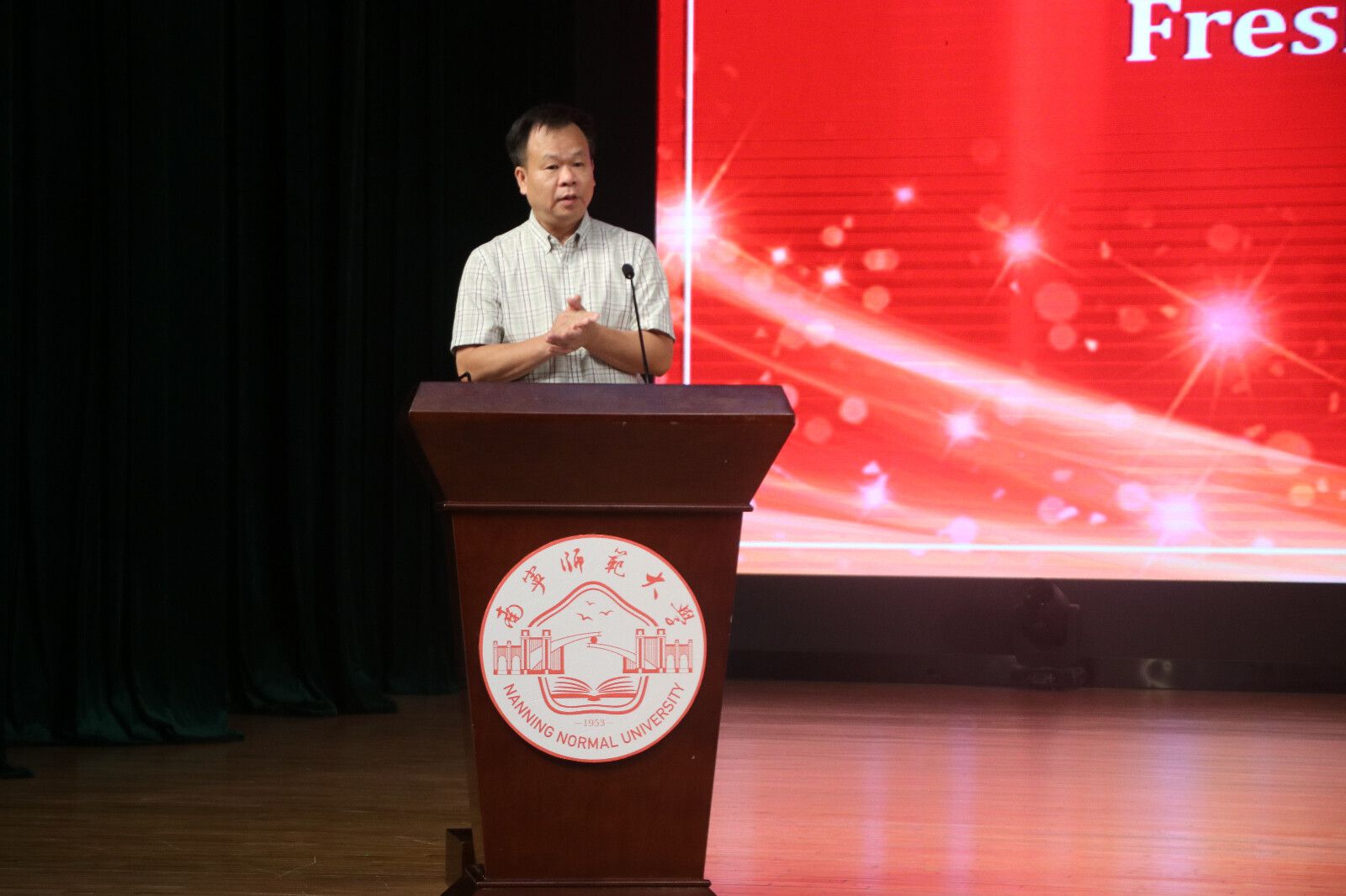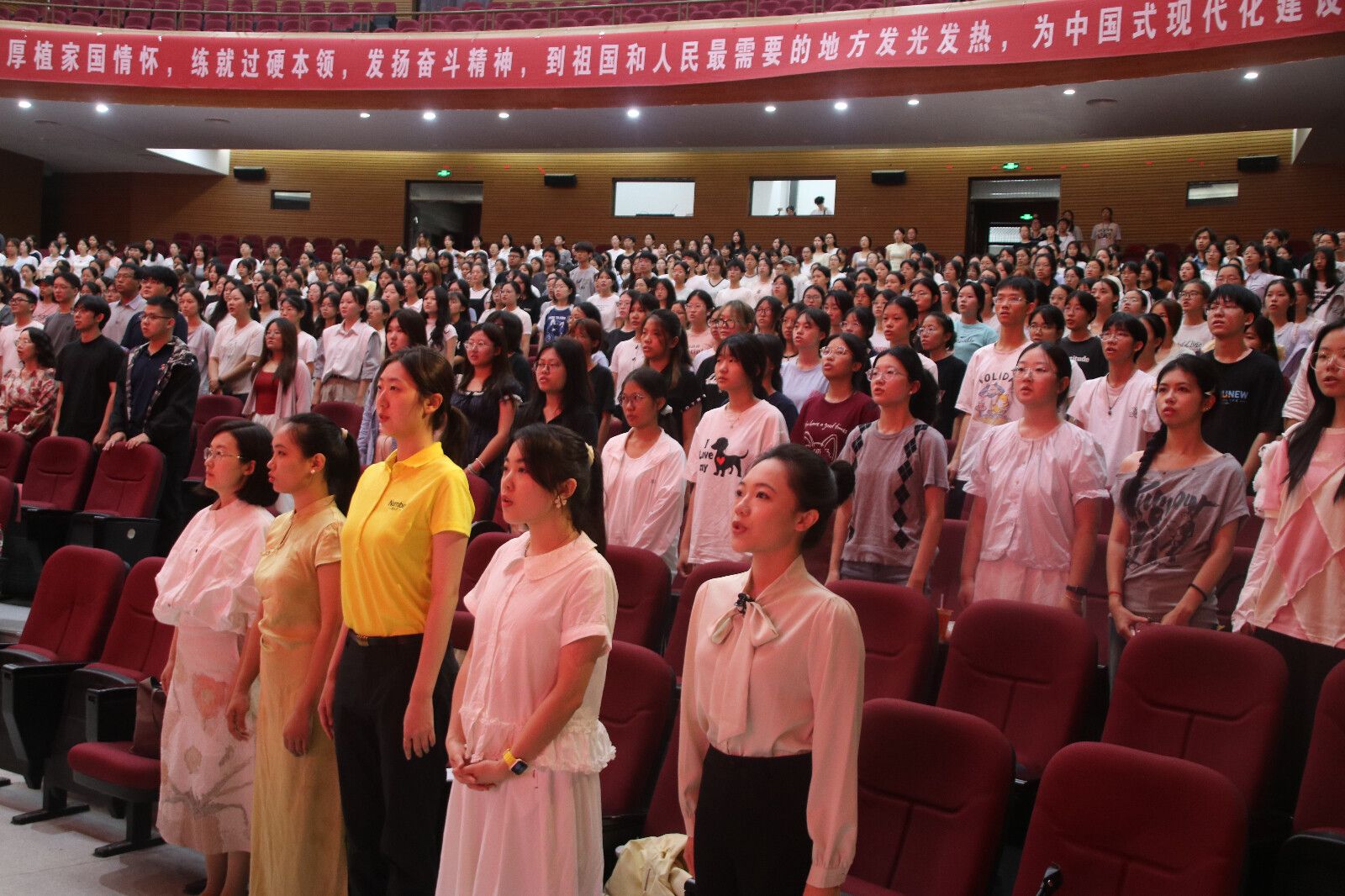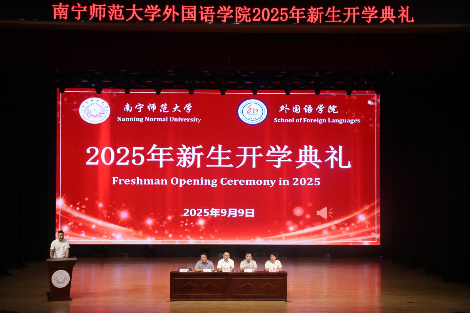 9月9日上午,南宁师范大学外国语学院于武鸣校区音舞楼千人演播厅举行2025级新生开学典礼。外国语学院党委书记苏华、院长陈光伟、副院长张晓鹏、副院长蒙岚、党委副书记刘晖晖、学院部分教师、学工办全体老师以及2025级全体新生共同出席。本次典礼由刘晖晖副书记主持。
