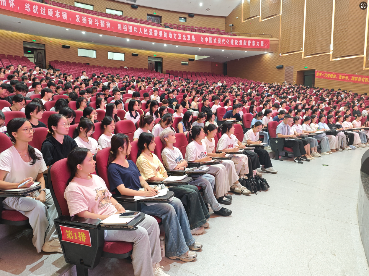 9月11日,数学与统计学院分党校在武鸣校区千人演播厅进行了新生党的基本知识培训开班典礼暨党课第一讲。专题党课由学院党委书记余敢才主讲,全体新生共同参与此次培训。