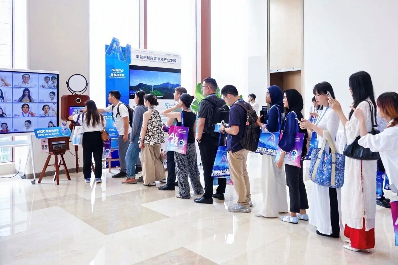 从15日大会筹备到大会顺利举办,志愿者们听从指挥、服从安排,在各自的服务岗位上以饱满的热情和良好的态度为参会嘉宾提供帮助。会议前夕,他们协助布置会场、仔细核对座次、分装物料,确保每一份“AI显眼包”都能准确无误地送到嘉宾手中。会议当天,志愿者们以最饱满的精神状态迎接八方来客。他们承担起动线指引、疑问解答、宣传AI互动拍照设备等重要工作,还热情引导嘉宾和数字人“智妍博士”及东盟国家标志性建筑牌拍照打卡留念。现场欢声笑语不断,科技与人文实现了温暖的交融。