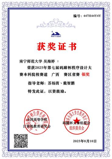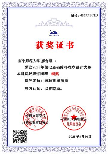 赛后,参赛学生表示,本次经历极大增强了他们在程序设计学习与科技竞赛中的信心与动力。大家将以此次获奖为新起点,继续夯实理论基础,强化实践创新能力,力争在未来各类高水平学科竞赛中再创佳绩、实现更大突破!