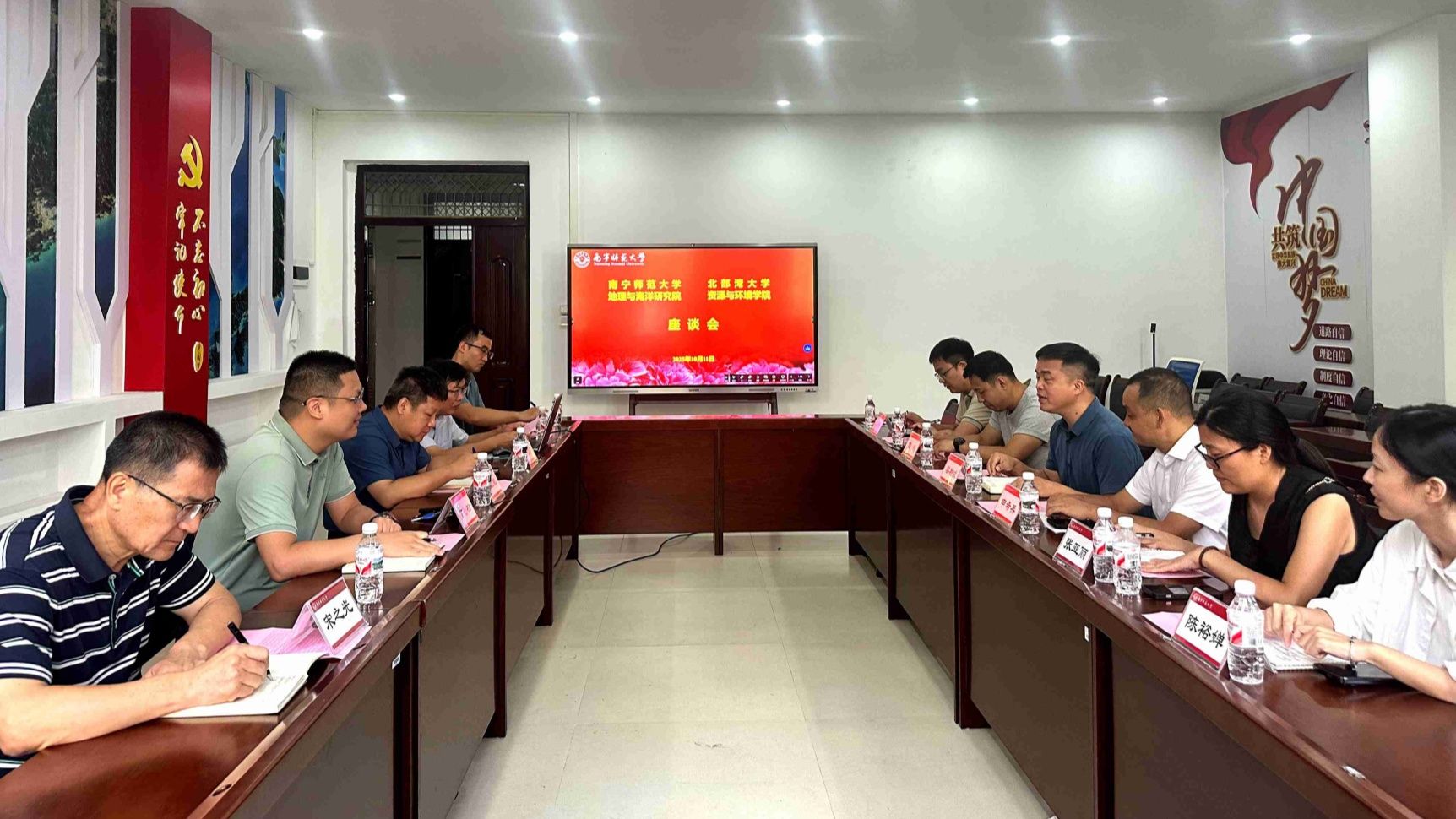 10月11日上午,北部湾大学党委常委、统战部部长、资源与环境学院党委副书记、院长黎树式教授率领调研团队一行7人莅临我校考察交流。地理与海洋研究院党委书记黄胜敏研究员、院长胡宝清教授等领导班子成员热情接待并全程陪同调研。