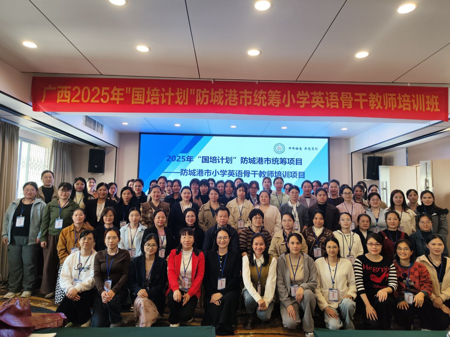 由我校外国语学院承办的广西2025年“国培计划”——防城港市小学英语骨干教师培训班于10月24日在南宁正式开班。外国语学院院长陈光伟、外国语学院副院长高飞雁、防城港市教育科学研究所英语教研员汤坚及防城港市各小学70名英语骨干教师出席开班仪式。