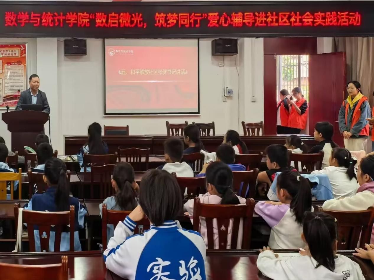 为进一步增强同学们的社会责任感,提升实践能力与综合素质,10月25日,数学与统计学院2025年第一期爱心辅导活动在南宁市武鸣区和平解放社区正式启动。和平解放社区张健书记、学院相关师生作为嘉宾与志愿者共同参与本次活动。