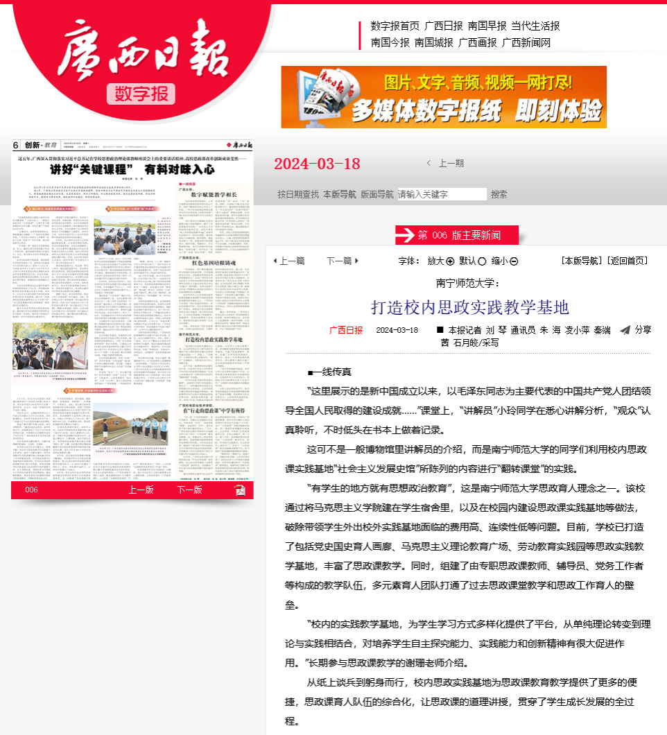 【广西日报】南宁师范大学:打造校内思政实践教学基地