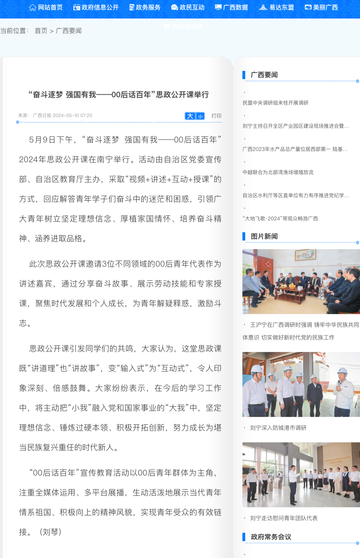 【广西壮族自治区人民政府网站】“奋斗逐梦 强国有我——00后话百年”思政公开课举行
