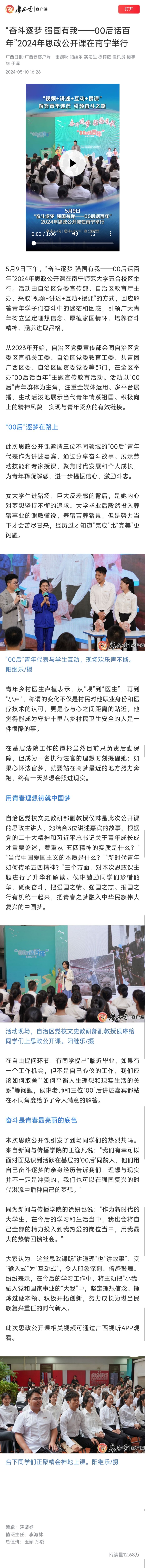 【930老友记微信公众号】“奋斗逐梦 强国有我——00后话百年”2024年思政公开课高校专场在南宁举行