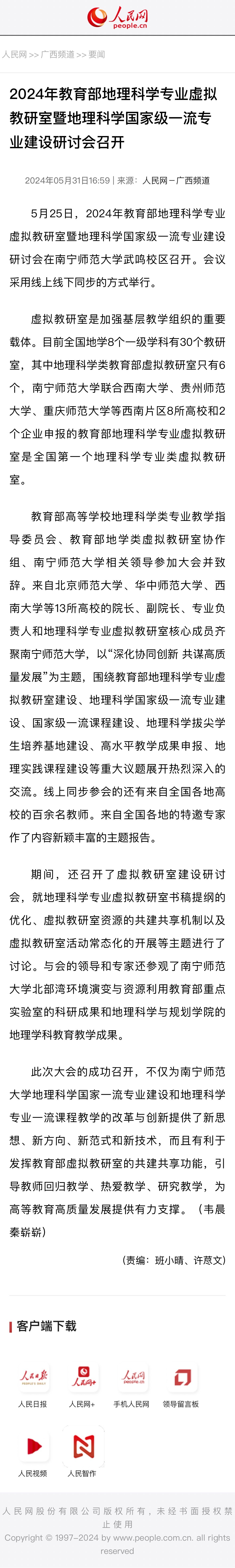 【人民网】2024年教育部地理科学专业虚拟教研室暨地理科学国家级一流专业建设研讨会召开