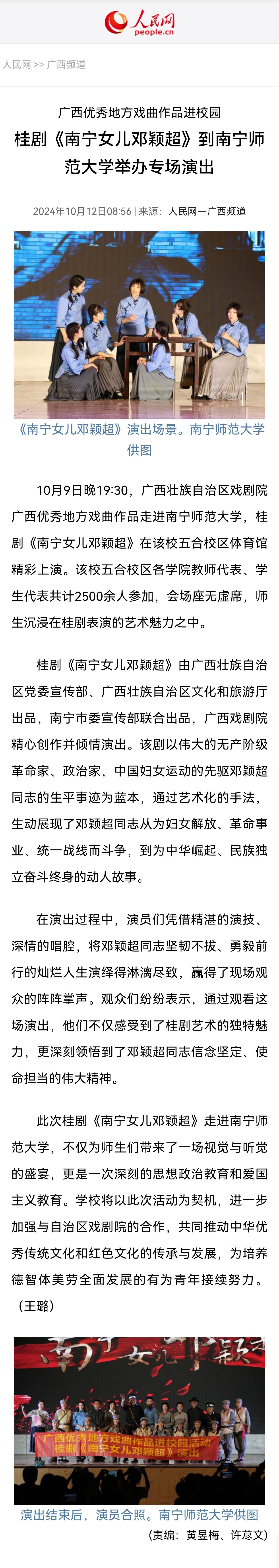 【人民网】桂剧《南宁女儿邓颖超》到南宁师范大学举办专场演出