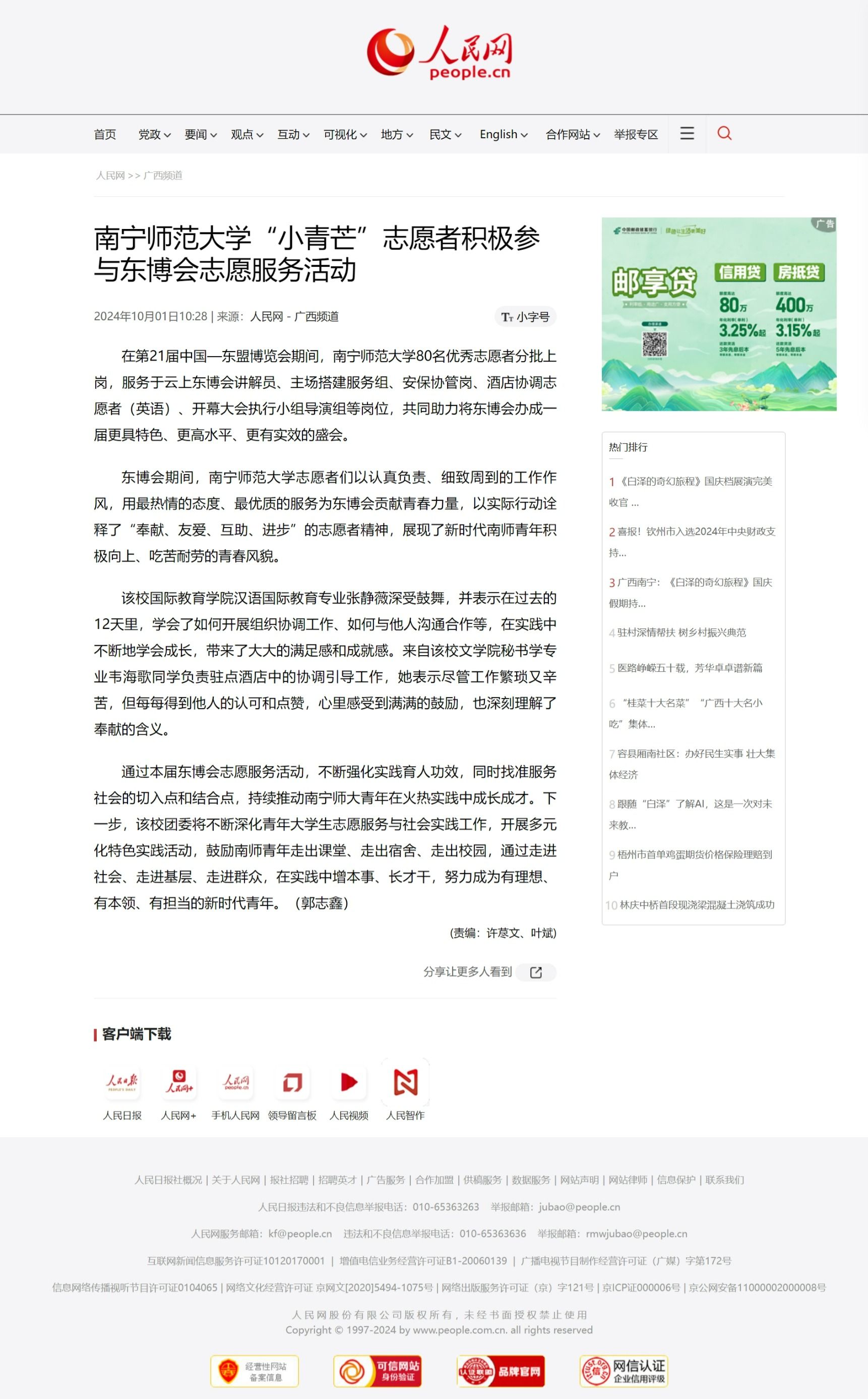 南宁师范大学“小青芒”志愿者积极参与东博会志愿服务活动 (people.com.cn)