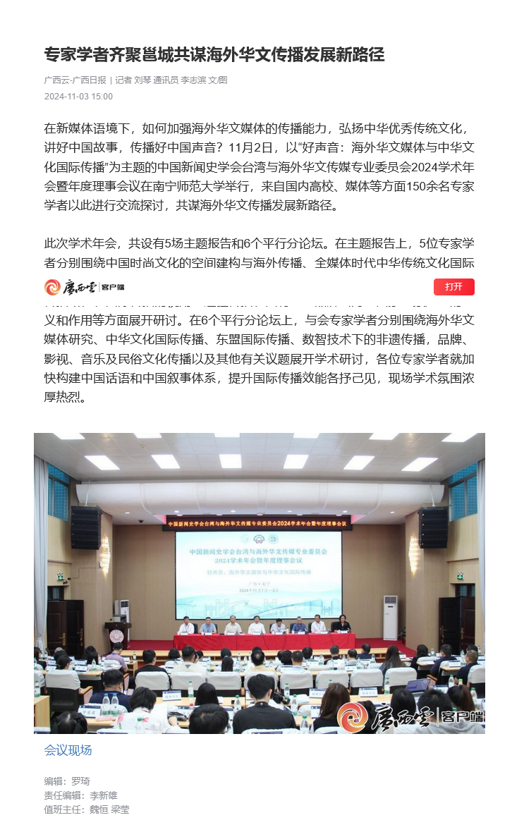 【广西云-广西日报】专家学者齐聚邕城共谋海外华文传播发展新路径