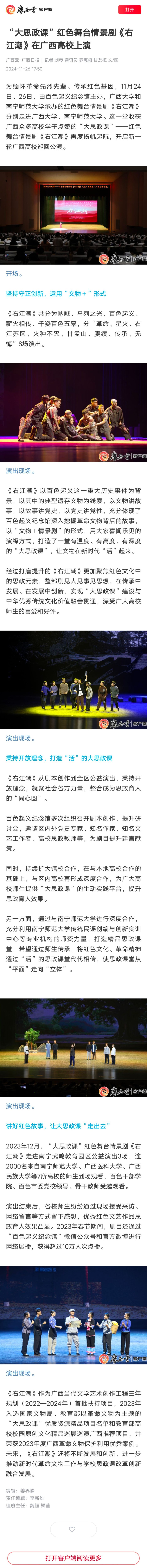 【广西日报-广西云客户端】“大思政课”红色舞台情景剧《右江潮》在广西高校上演