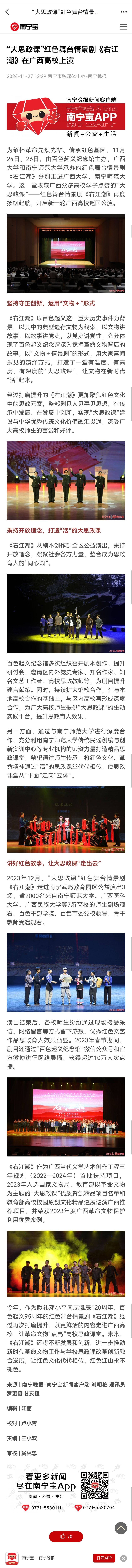 【南宁市融媒体中心-南宁晚报】“大思政课”红色舞台情景剧《右江潮》在广西高校上演