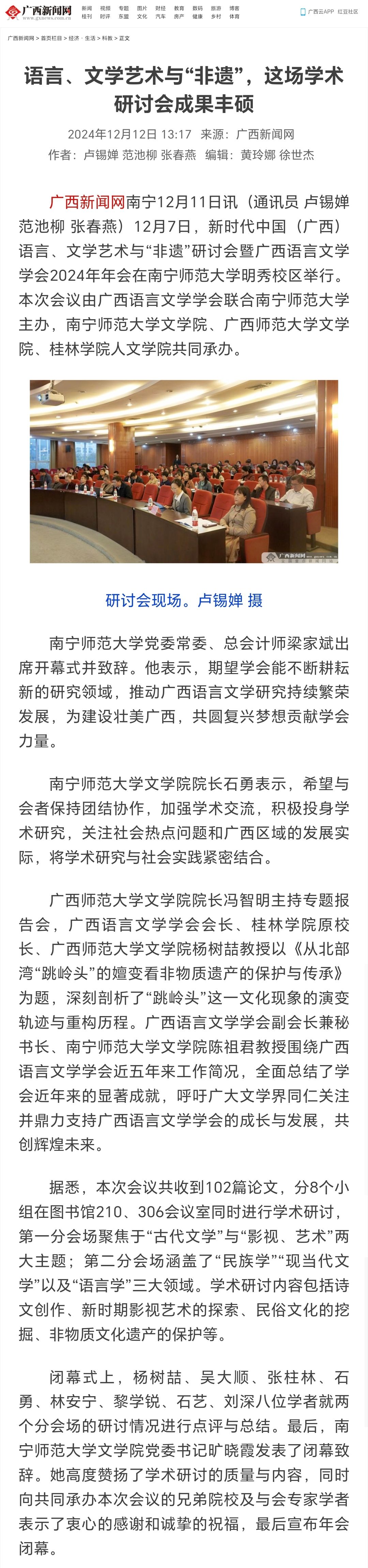 【广西新闻网】语言、文学艺术与“非遗”,这场学术研讨会成果丰硕