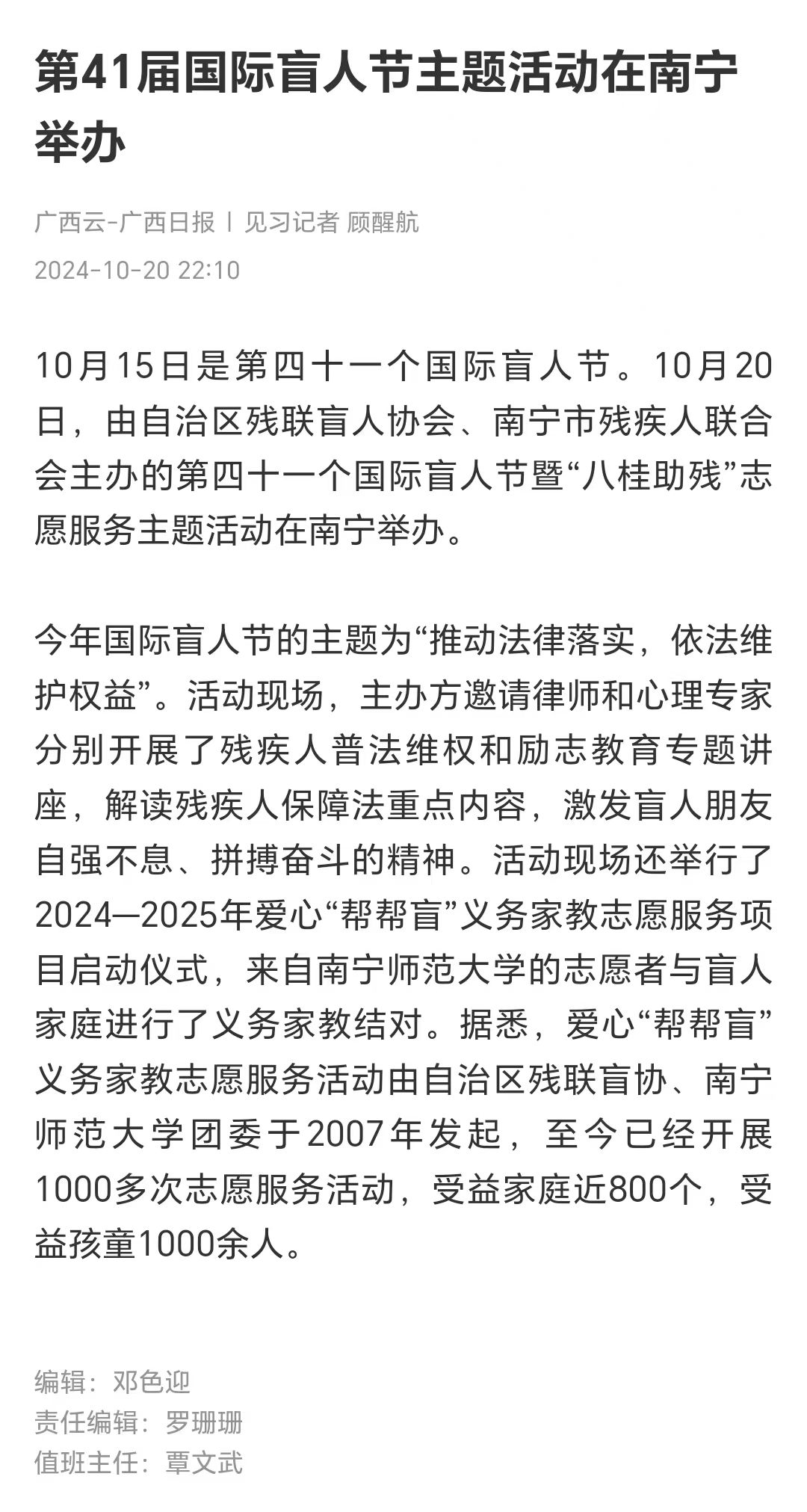 【广西云-广西日报】第41届国际盲人节主题活动在南宁举办