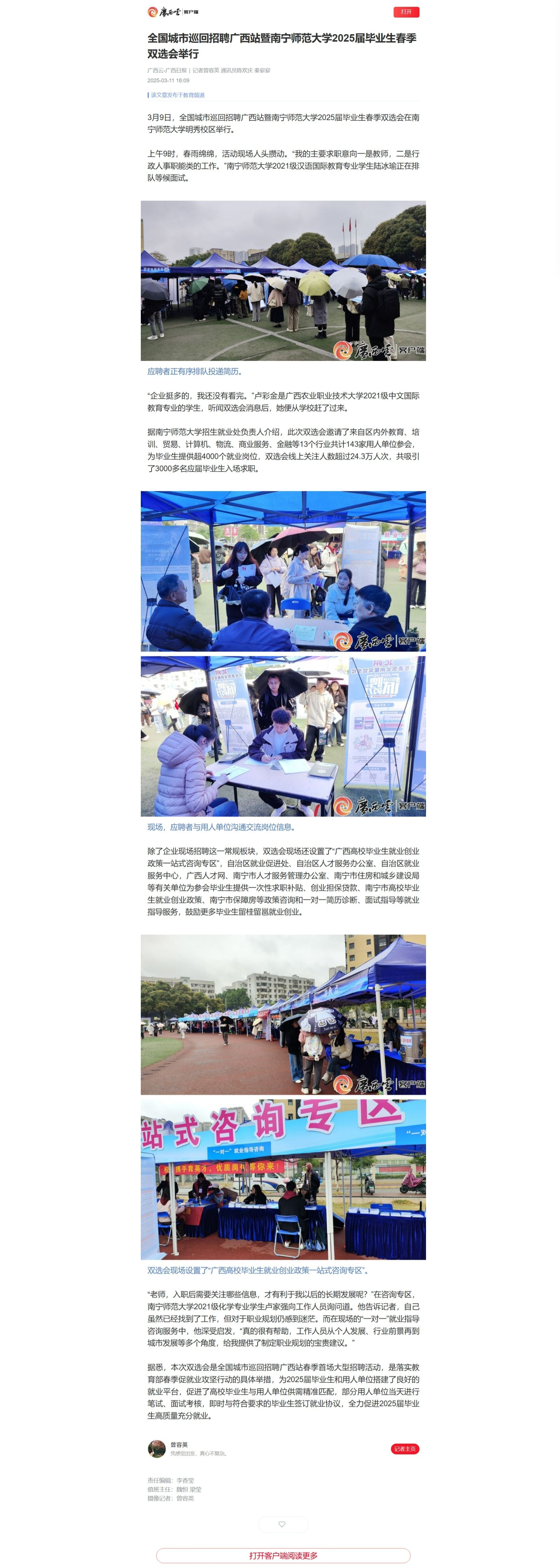 【广西云-广西日报】全国城市巡回招聘广西站暨南宁师范大学2025届毕业生春季双选会举行