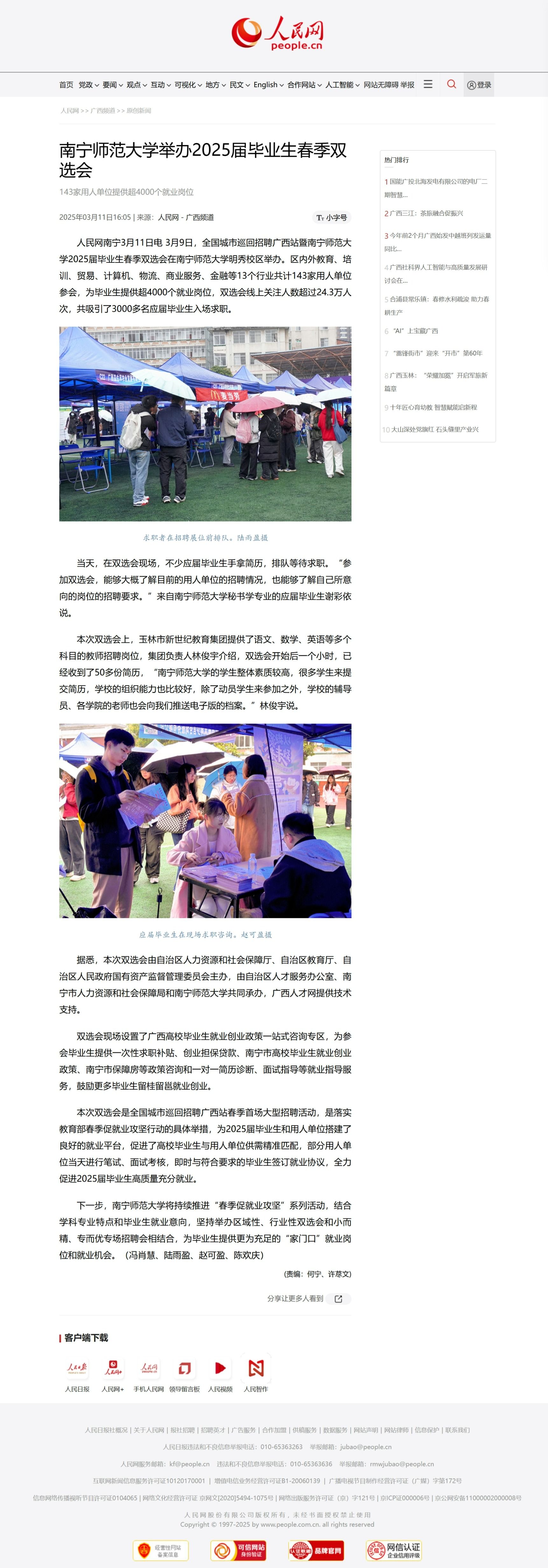【人民网】南宁师范大学举办2025届毕业生春季双选会