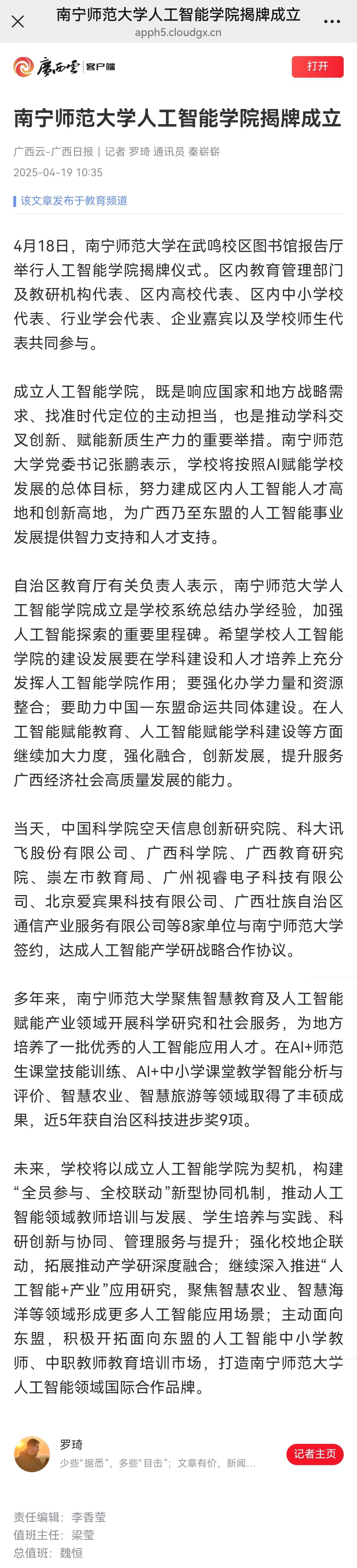 【广西云-广西日报】南宁师范大学人工智能学院揭牌成立