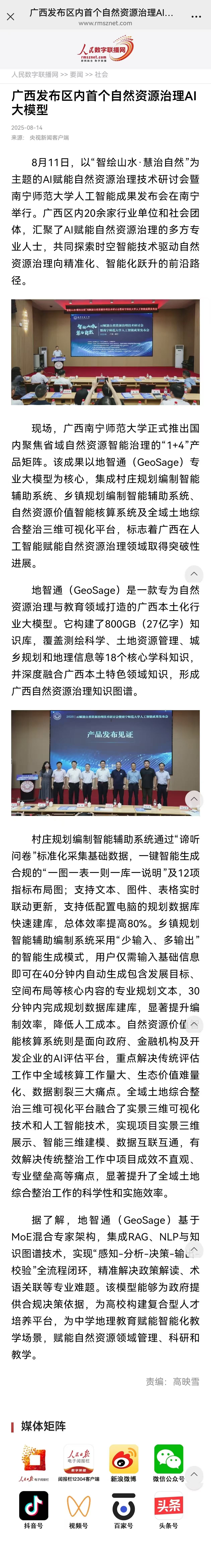 【当代广西网】南宁师范大学发布自然资源治理AI大模型