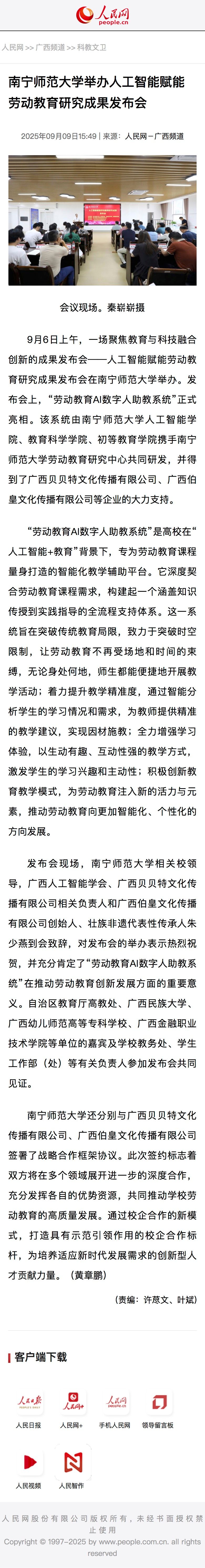 【人民网】南宁师范大学举办人工智能赋能劳动教育研究成果发布会