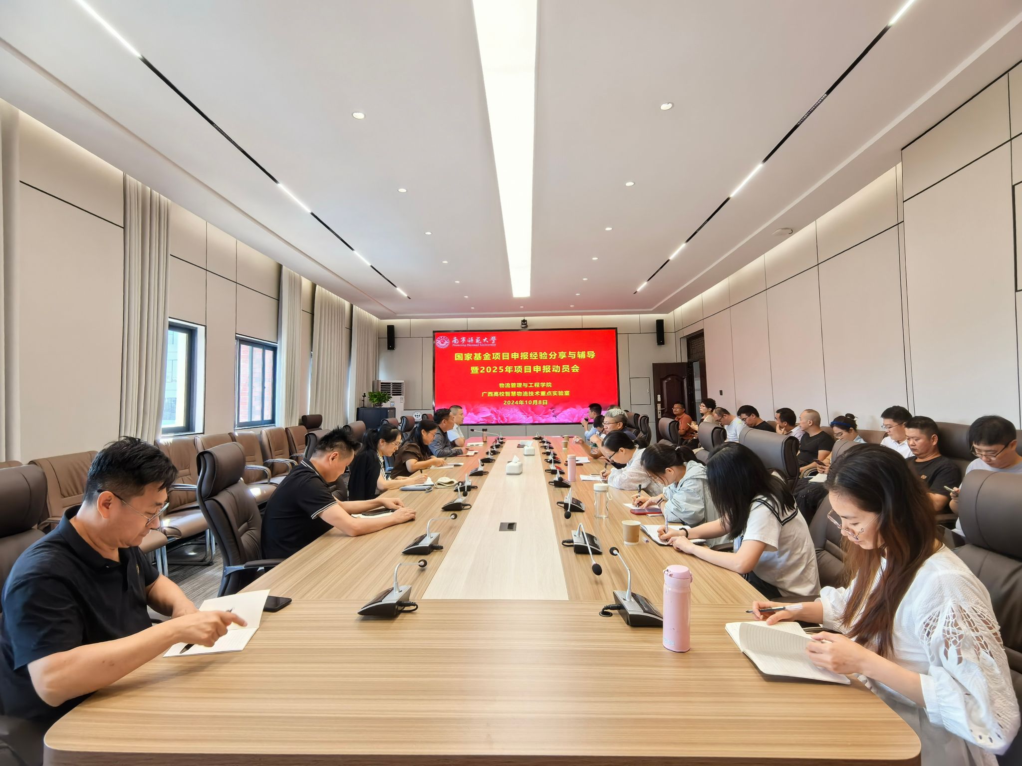 2024年10月8日下午,物流管理与工程学院在武鸣校区地化楼C413室召开国家基金项目申报经验分享与辅导暨2025年项目申报动员会。会议由刘新全副院长主持,学院全体专任教师参加了会议。