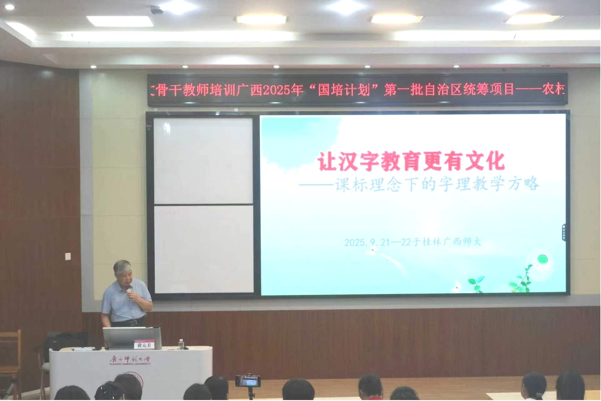 9月21日上午和22日上午,应广西师范大学文学院的邀请,我校黄亢美研究员作了题为“让汉字教育更有文化——课标理念下的字理教学方略”的主题报告。该校文学院承办的“国培计划”小学语文骨干教师培训班120名学员聆听了讲座。